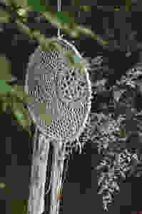 Dream catchers with gold dipped feathers and lace hung in the trees. Tassel garlands and fringe piñatas in golds, silvers and lilacs adorned the garden courtyard. There was a bohemian tribal tattoo station, brass vases filled with wild flowers. Festoon string lights hung across the courtyard and there was a teepee for the kids to play in. –which we also designed and made with a custom gold piñata at the top.